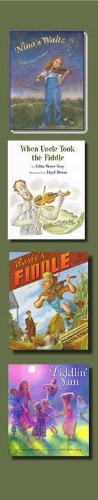 The hour long program introduces books for all ages that include fiddles, fiddling, fiddlers, or traditional tunes that can be played on a fiddle. Several of the tales are set in places where a strong cultural heritage has expressed itself in music, such as Appalachia, Quebec, and Ireland. Other books depict times, such as pioneer days, the Civil War, or the early Industrial Age, when music was used to tell stories or to help lighten heavy loads. The fiddle tunes flow with the tales in the books, bringing the stories to life while the audience is laughing, clapping, and singing along. Following the performance the children are encouraged to peruse the books that were presented, while a question and answer period allows them to satisfy their curiousity about the fiddle, banjo, and guitar.
