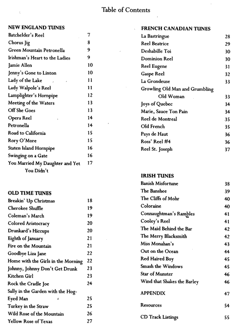 A collection of 63 tunes from the New England, French Canadian, old-time, and Celtic genres.